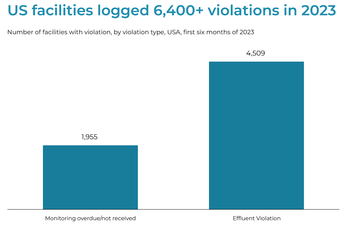 For each facility, we keep track of which compounds it may discharge, how much and into which recipients. We also keep track of compliance and violation history, all easily searchable